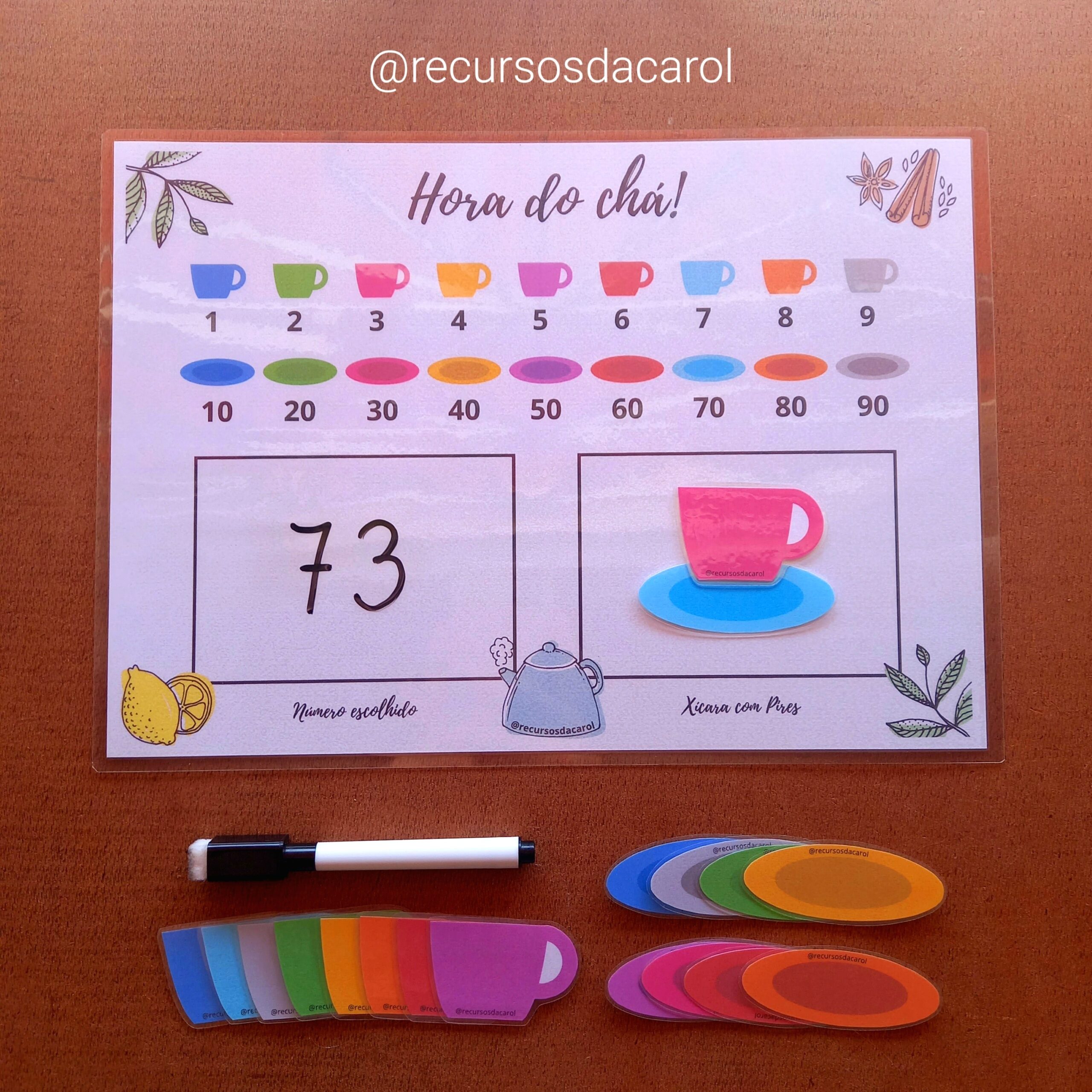 - Outra forma é fazer o inverso, a educadora coloca a combinação de xícara com píres, e a criança precisa escrever o número correspondente.