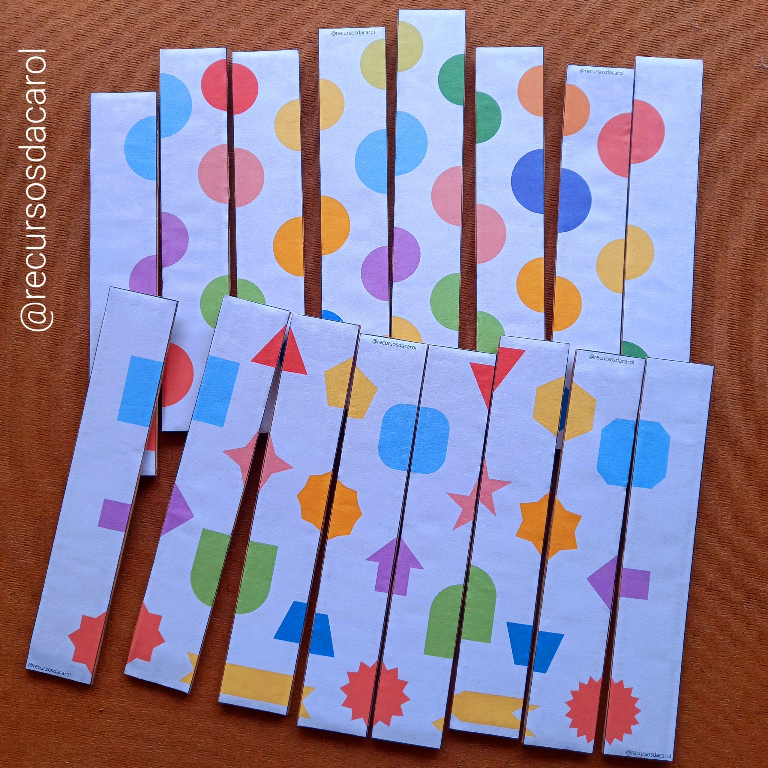 • 1 quebra-cabeça com formas e cores variadas (Tamanho A4) composto por 8 peças